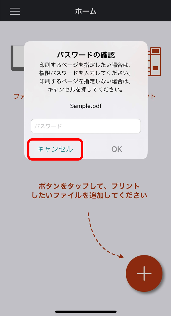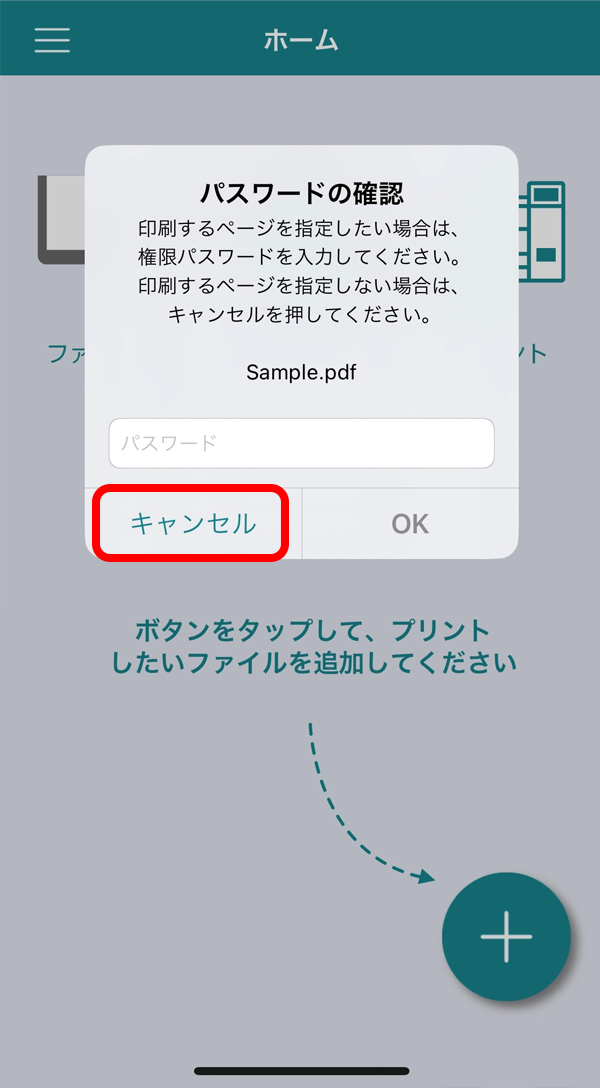 ※「パスワードの確認」画面は、アプリバージョン4.1.6をご利用の場合に表示されます。表示された場合は、「キャンセル」ボタンを押してください。