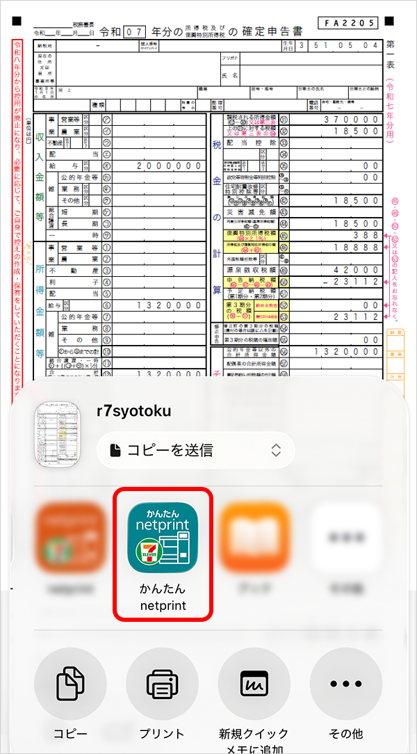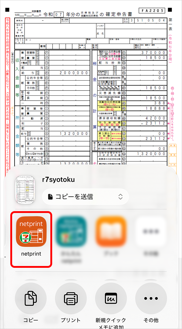 ネットプリントを使えば、iPad / iPhone で作成した確定申告書(PDF)ファイルを、お近くのセブン‐イレブンで手軽にプリントする事ができます。
