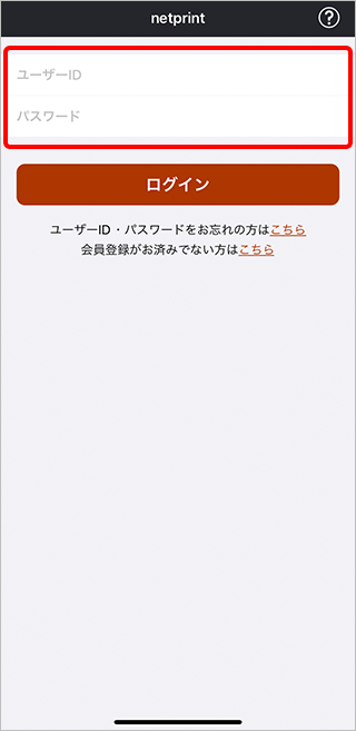 「netprint」アプリを起動し、ネットプリントのユーザー登録をしてIDとパスワードを取得します。