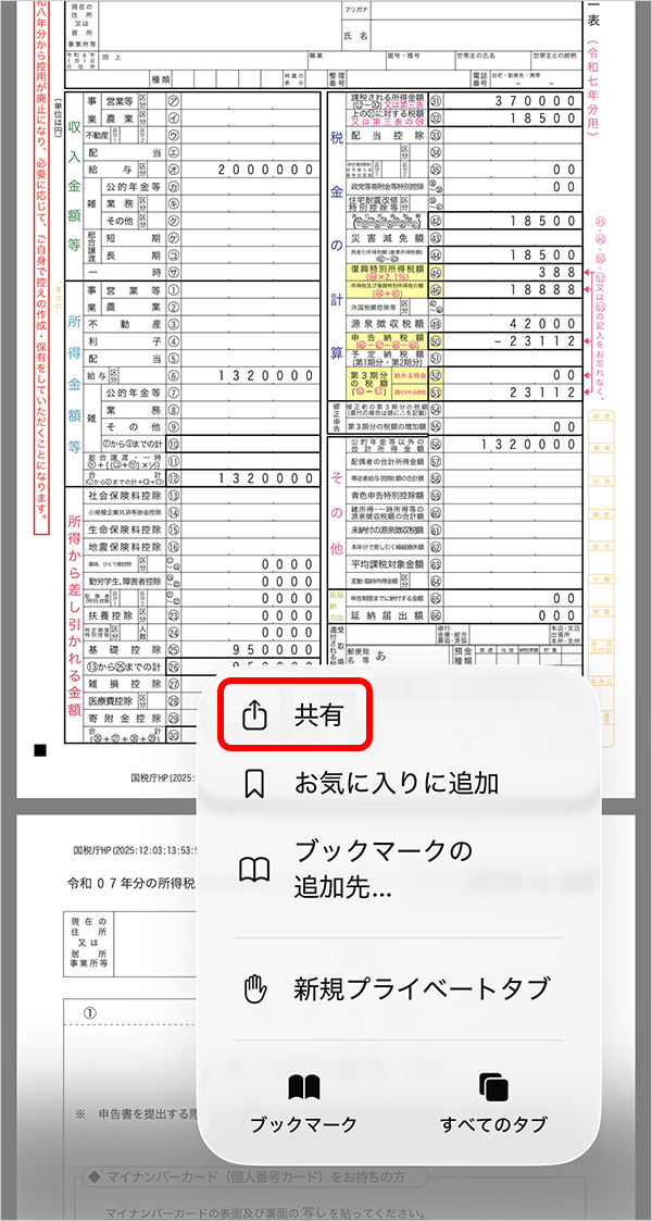 確定申告書 iPad / iPhone からのネットプリント®方法